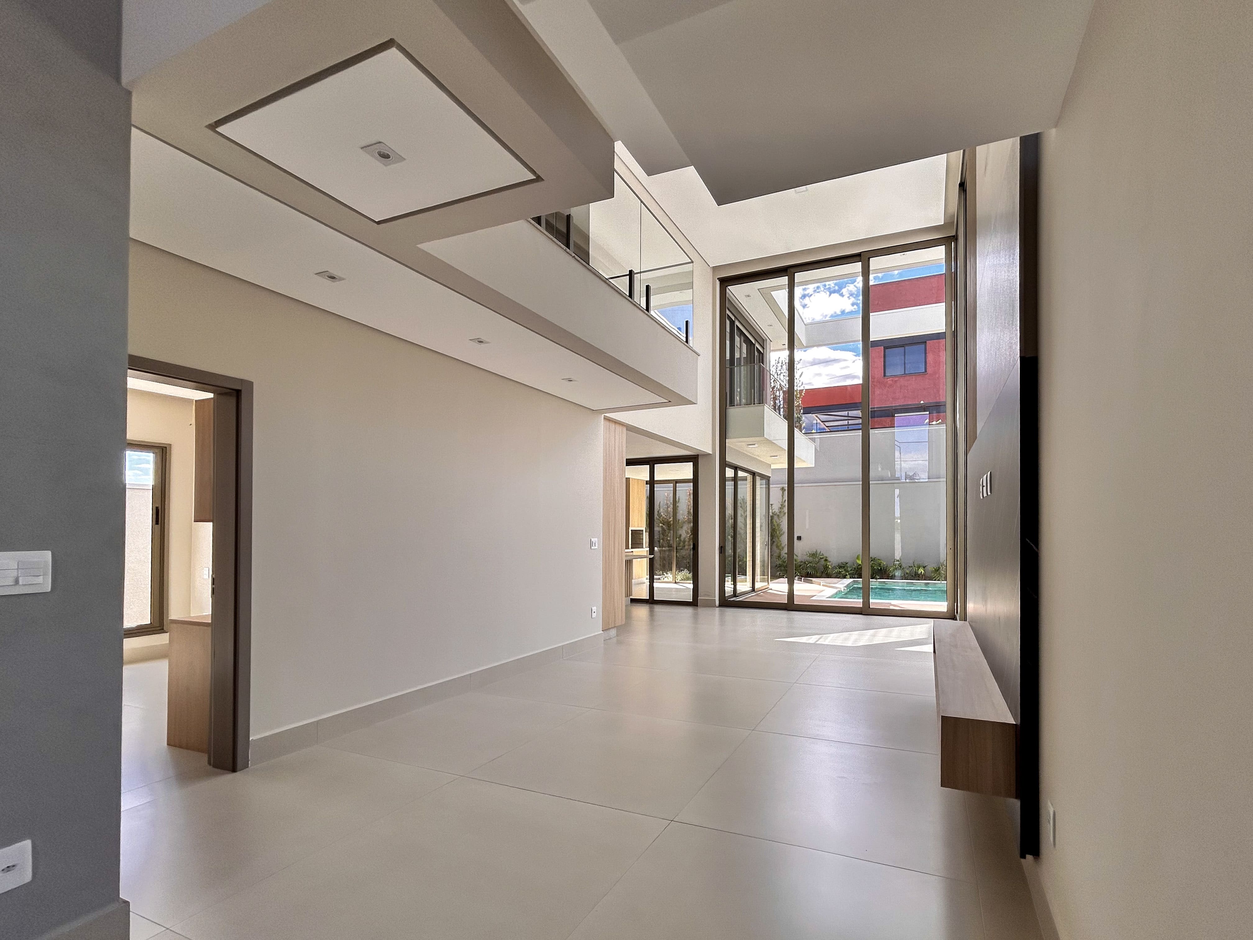 - Ampla sala de estar e jantar com pé-direito duplo e integração visual com a área externa